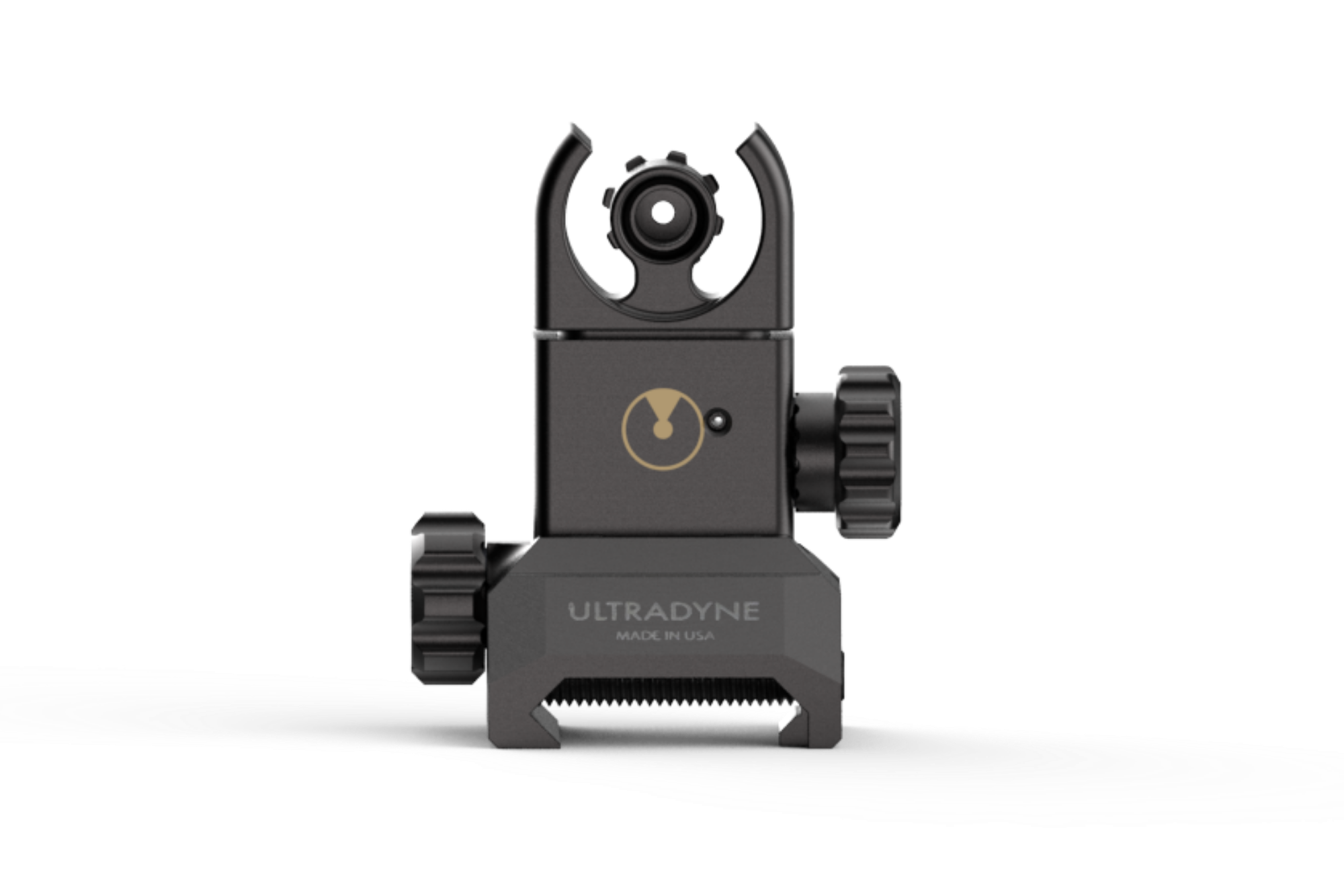 Most BUIS systems utilize a sight picture that is non-intuitive. The brain’s visual systems are asked to align a circular rear aperture with a rectangular front post shape while simultaneously ignoring the “ears” that protect the front sight post. Dynalign’s circle-within-circle sight picture allows for faster sight picture acquisition. Additionally, the use of a front aperture further reduces parallax effect which makes accuracy less dependent on precise sight alignment.